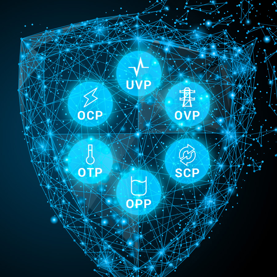 סדרת Hydro PTM PRO כוללת מערך הגנות מלא לשמירה על רכיבי החומרה, ביניהן: הגנה מפני מתח יתר (OVP), מתח נמוך (UVP), זרם יתר (OCP), הספק יתר (OPP), קצר חשמלי (SCP) וטמפרטורה גבוהה (OTP) – כל אלה מבטיחים פעולה בטוחה ואמינה לאורך זמן.