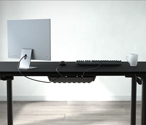 מגש לניהול כבלים ומתלה לאוזניות שומרים על שולחן נקי ומסודר.