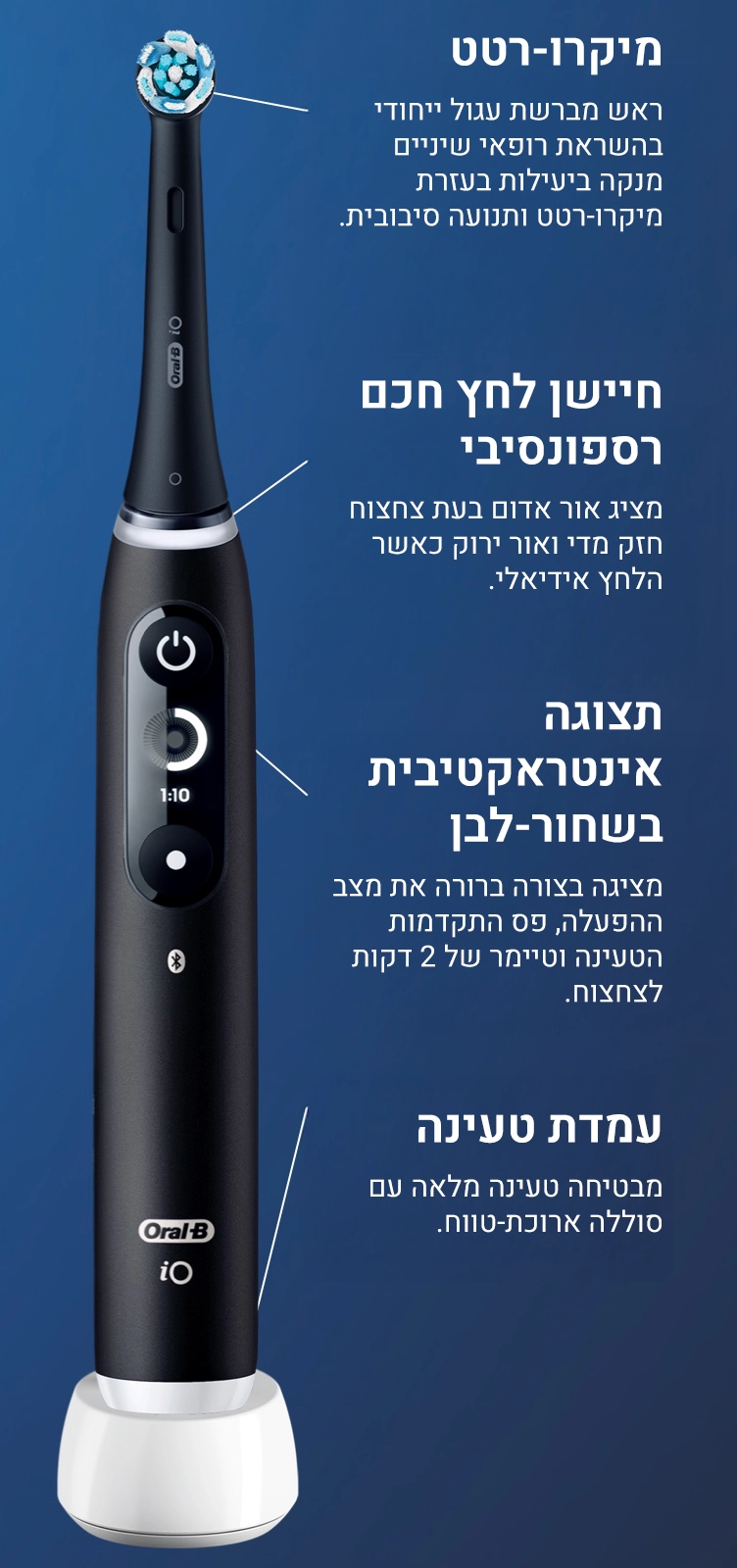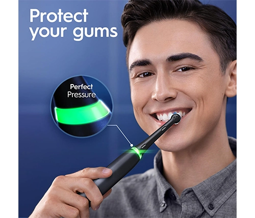 עם מברשת שיניים חשמלית של Oral-B, הצורה העגולה מנקה טוב יותר: ראש המברשת העגול מקיף כל שן לניקוי טוב יותר ב-100% וחניכיים בריאות יותר*