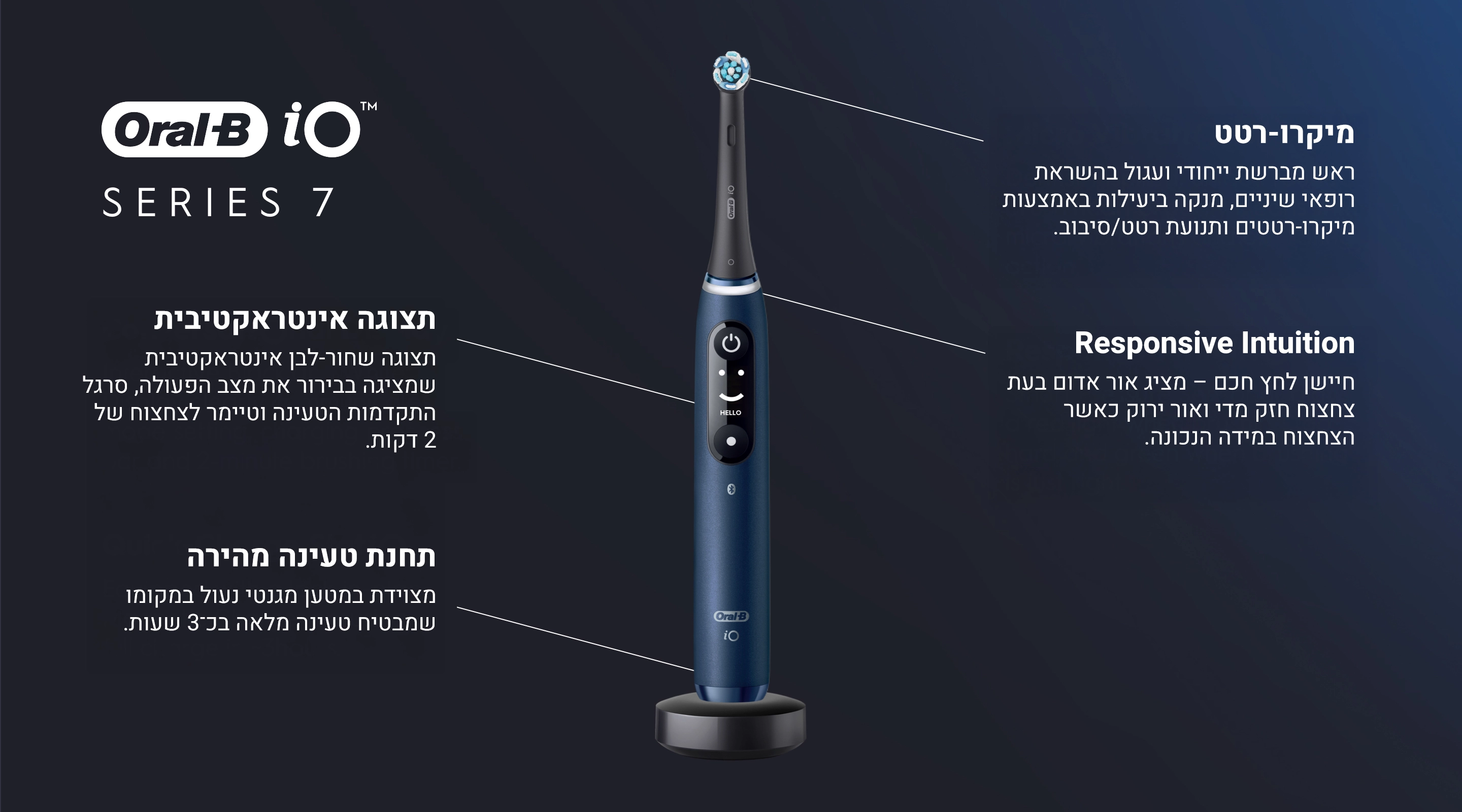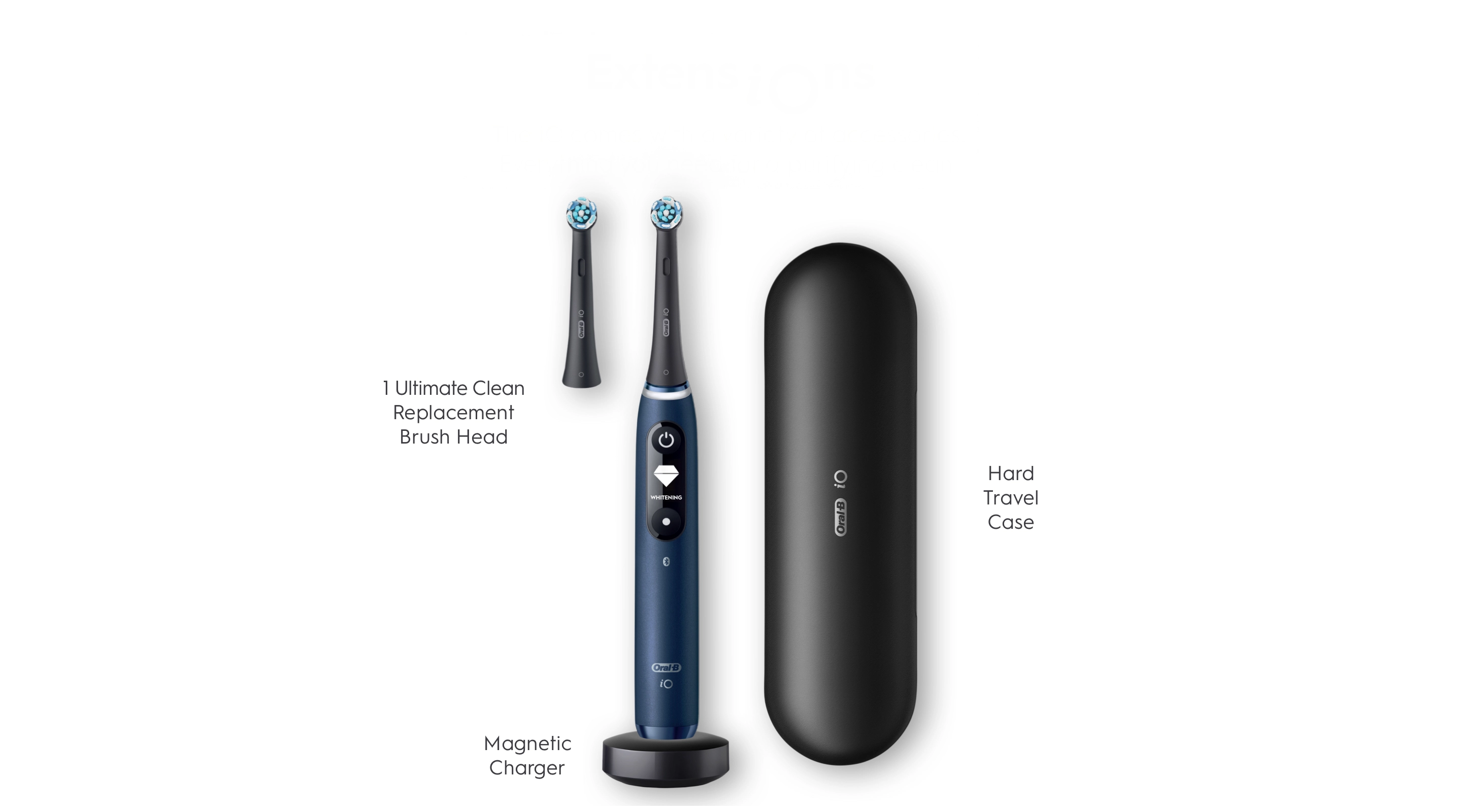 ראש מברשת להחלפה, מטען מגנטי וקייס נסיעות קשיח
