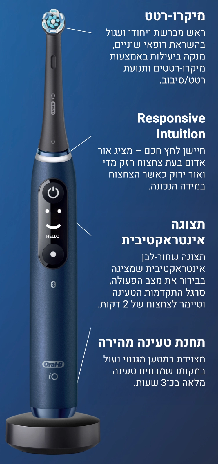 עם מברשת שיניים חשמלית של Oral-B, הצורה העגולה מנקה טוב יותר. ראש המברשת העגול עוטף כל שן לניקוי יסודי יותר ב־100% ולחניכיים בריאות יותר.*