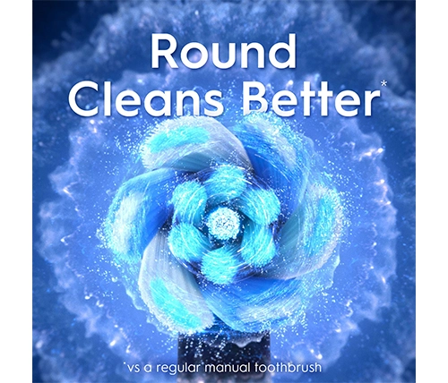 עם מברשת שיניים חשמלית של Oral-B, הצורה העגולה מנקה טוב יותר. ראש המברשת העגול עוטף כל שן לניקוי יסודי יותר ב־100% ולחניכיים בריאות יותר.*