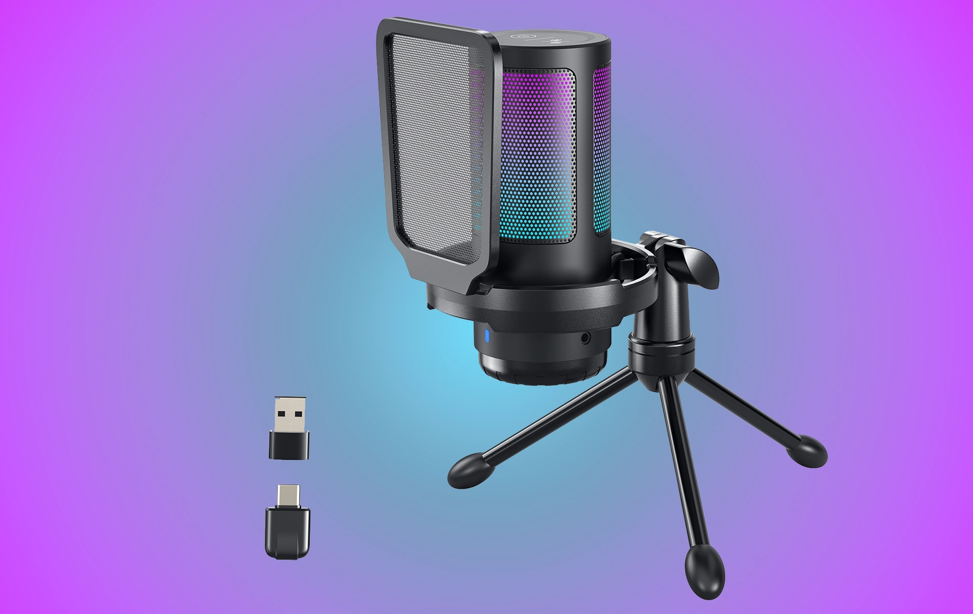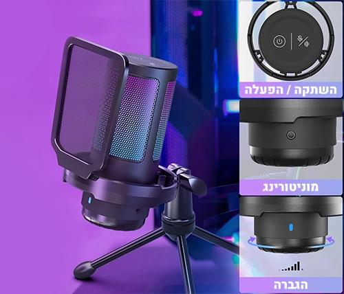 המיקרופון מגיע עם תאורת RGB בעלת 7 צבעים ו-10 מצבי תאורה שונים, מה שמוסיף אווירה מיוחדת לכל סשן משחק או שיחה. בנוסף, הוא קל משקל וכולל מתלה נגד רעידות, פילטר "פופ", וחצובה לנוחות מרבית.