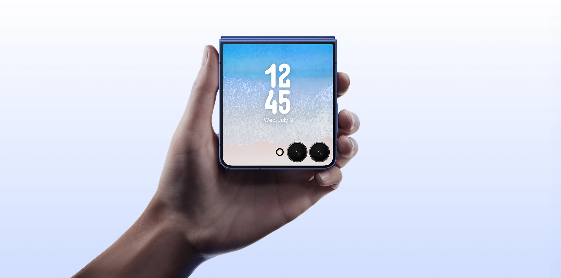 מסך הכיסוי המעוצב מחדש של Galaxy Z Flip7 כולל את המסגרת הדקה ביותר שלנו עד היום, ומאפשר לכם לעשות דרך ה-FlexWindow יותר דברים מאי פעם. המסך הראשי המהמם מעניק עכשיו חוויית צפייה ללא הפרעות. זהו מראה מרשים.1