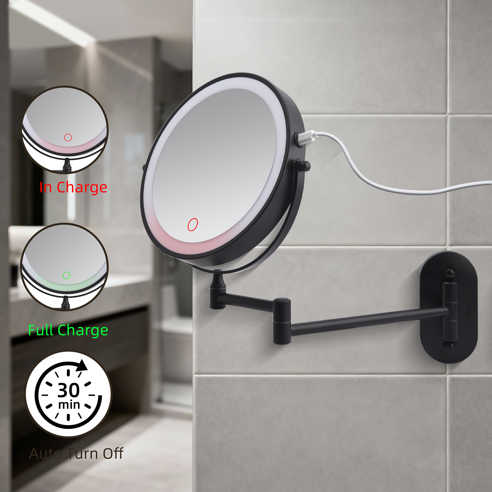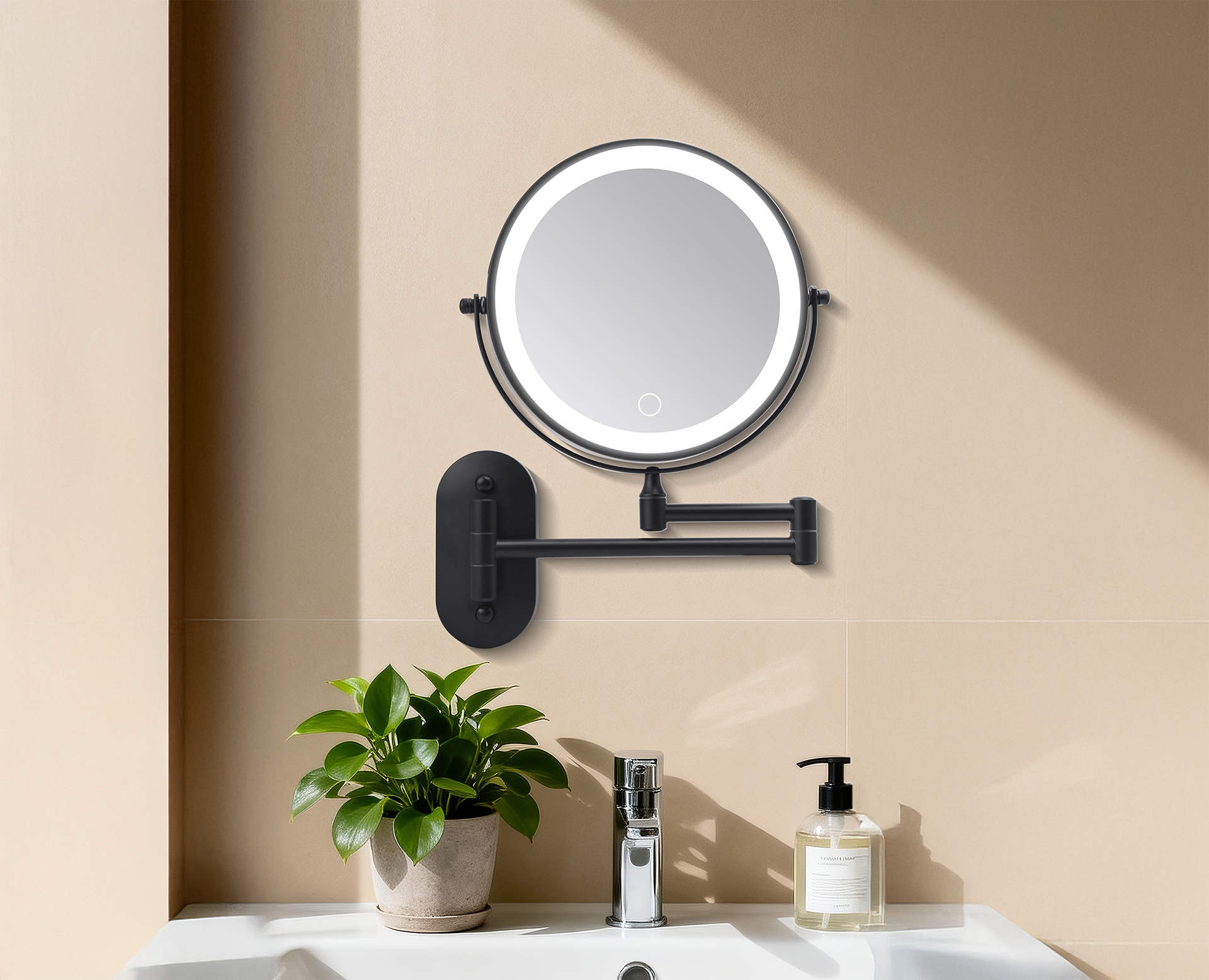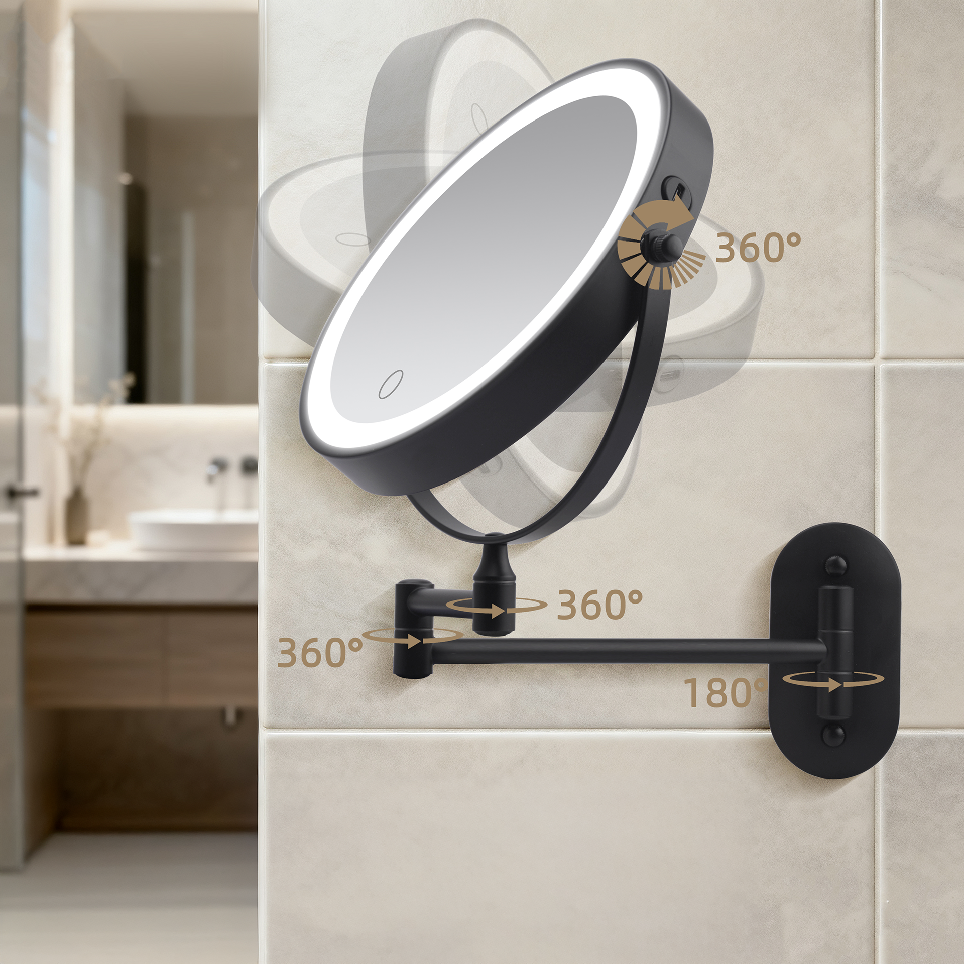 מראת איפור עם תאורת לד חכמה נטענת 8 אינץ' וזרוע טלסקופית נשלפת MIZUKI