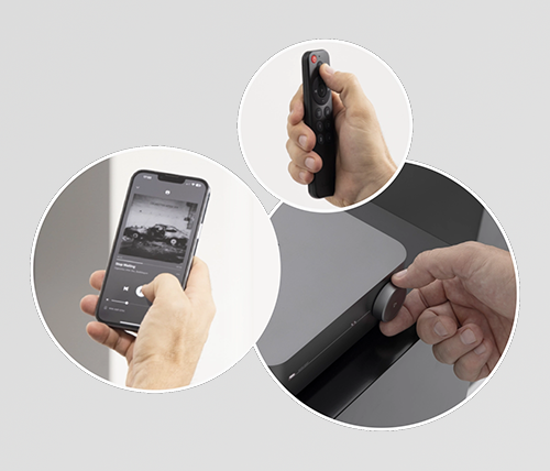 באמצעות שלט הבלוטוס, הכולל Alexa מובנית עבור פקודות קוליות. תוכלו לבצע בקלות פעולות כמו נגינה, השהיה, דילוג על שירים, התאמות ווליום והשתקה. בנוסף, תיהנה מגישה בלחיצה אחת לתוכן המועדף עליכם באמצעות הגדרות קבועות מראש הניתנות להתאמה אישית.