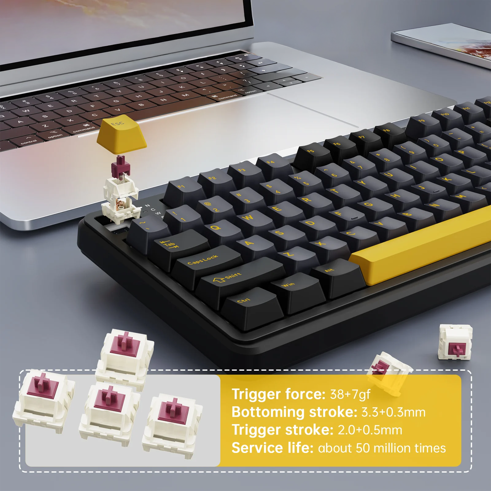 מקלדת X98 למחשב כוללת עיצוב Hot-Swap המהפכני את חוויית השימוש במקלדות מסורתיות. לוח ה-PCB המובנה מאפשר להחליף בקלות מתגים בעלי 3 או 5 פינים – ללא צורך בהלחמה – וליצור מקלדת מותאמת אישית מלאה. מתגי Blueberry הייעודיים יחד עם מקשי PBT בפרופיל גבוה מעניקים לכל הקשה תחושה נעימה וצליל איכותי במיוחד.