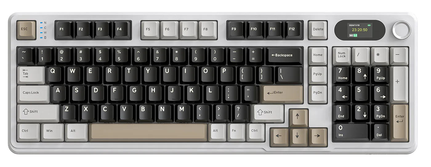 מקלדת X98 Magic כוללת מסך LED מטריציוני ברור ובהיר בגודל 1.5 אינץ’ וחוגת שליטה ניידת ונוחה לשימוש. המסך הקטן מציג מידע חשוב כגון שעה, תאריך ומצב הסוללה. בנוסף, בעת לחיצה על FN יחד עם החוגה, ניתן להשתמש בה להתאמת עוצמת השמע. עיצוב החוגה משלב נוחות ושליטה חכמה בשימוש היומיומי.