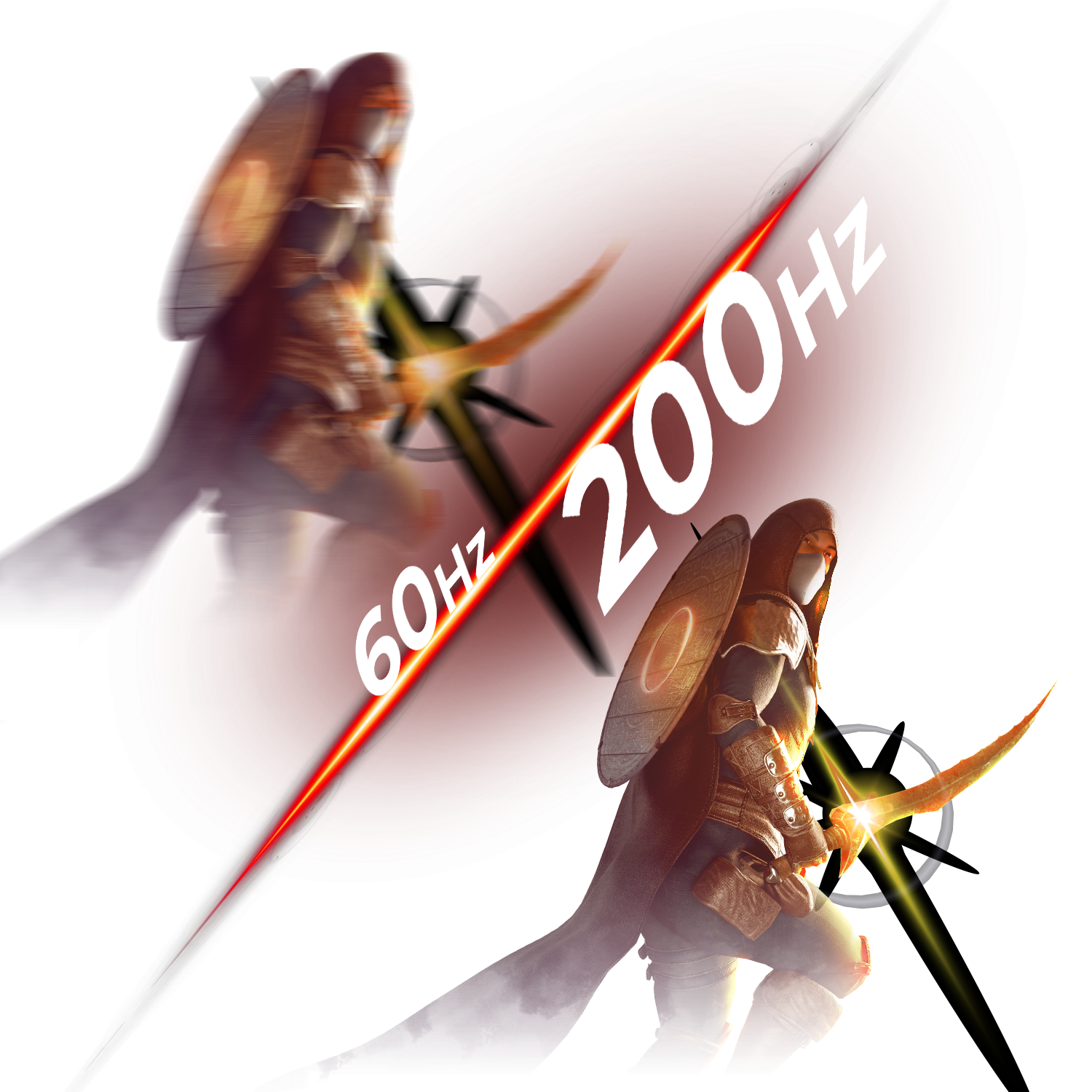 קצב רענון של 200Hz הוא יותר מפי שלושה מהסטנדרט בתעשייה (60Hz). שחררו את מלוא הפוטנציאל של כרטיסי המסך שלכם: עם ביטול קריעות מסך, טשטוש ותופעות "גמגום" – המשחק סוף סוף יזרום כמו שתוכנן, והיכולות שלכם יוכלו להגיע לרמות חדשות.