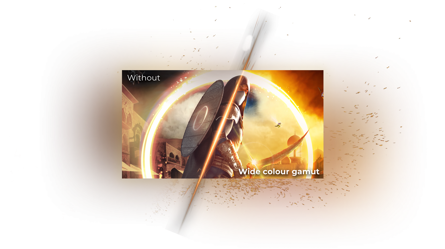 כשאתם נהנים מתמונות, סרטונים או משחקים, אנחנו רוצים שהתוכן על המסך שלכם ייראה מציאותי ככל האפשר. לכן מסך זה מגיע עם טכנולוגיית Wide Colour Gamut, המאפשרת להציג הרבה יותר צבעים מאשר מסכים רגילים. הדבר מתבצע באמצעות פתרון חומרה מיוחד, ולא רק בעזרת התאמות תוכנה פשוטות. התוצאה: תמונות מציאותיות באמת עם פרטים עדינים הנחשפים בזכות פלטת צבעים רחבה יותר.