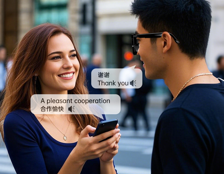 בזמן תקשורת פנים מול פנים ניתן לענוד את המשקפיים ולדבר בנוחות, בעוד שהתרגום הרשמי של השיחה יתבצע בזמן אמת לנייד. במהירות, בנוחות ובאיכותיות. תומך גם בשיחות דרך מסך ואונליין.