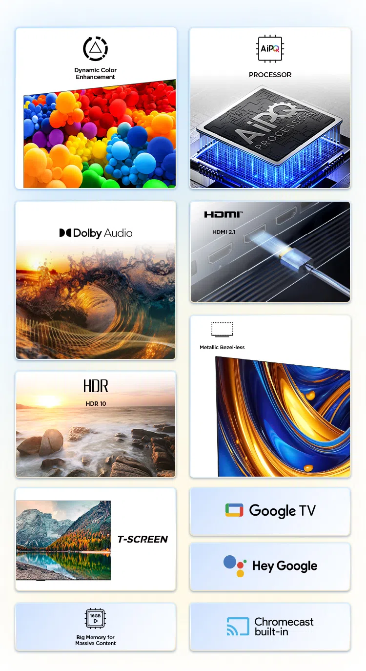 פותח בלעדית על ידי TCL, שיפור הצבע הדינמי נועד לייעל את חיות הצבע באופן אוטומטי. אלגוריתם קנייני מרחיב את מגבלות פלטת הצבע המסורתית – ומספק חוויית וידאו חיה ואיכותית יותר.