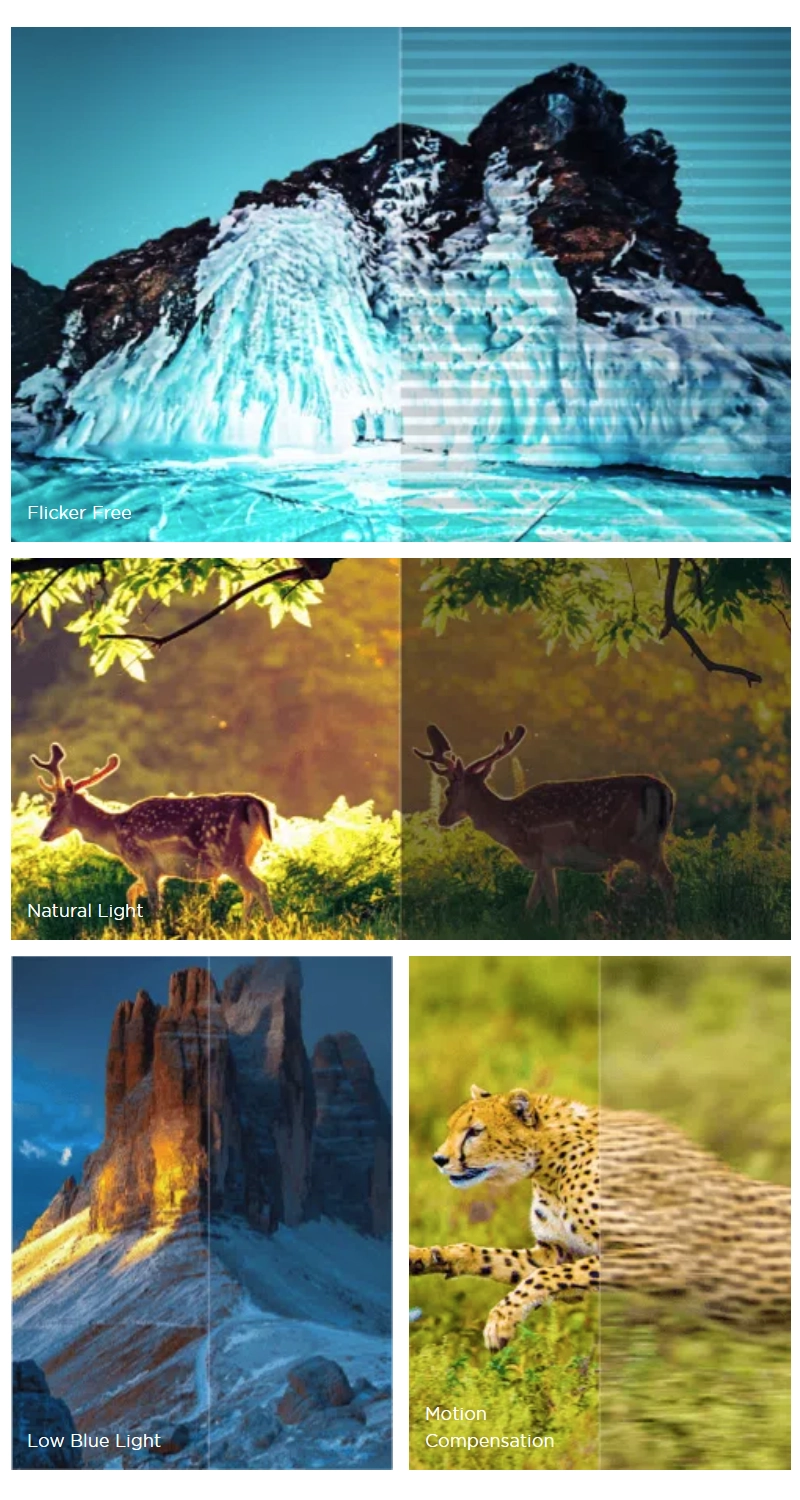 עם מגוון טכנולוגיות להגנה על העיניים כגון הפחתת אור כחול, אופטימיזציה של תאורה טבעית, ביטול הבהוב ועוד – ה-P7K ממשיכה לשמור על בריאות העיניים שלך. כל מה שנותר לך הוא ליהנות מסרטים ומשחקים.