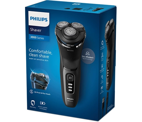מכונת גילוח פיליפס PHILIPS Shaver 3000 Series S3244/12 לשימוש רטוב ויבש