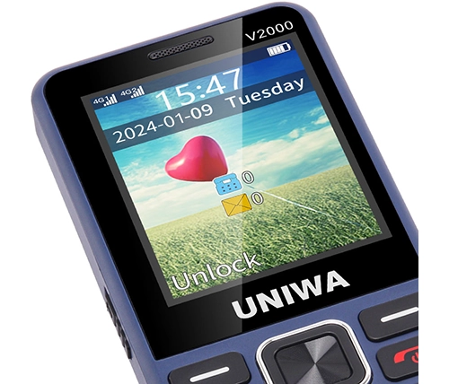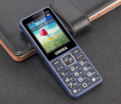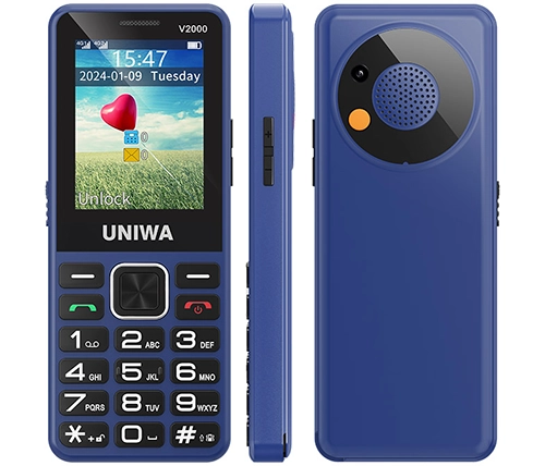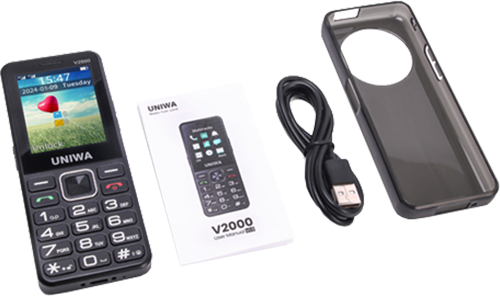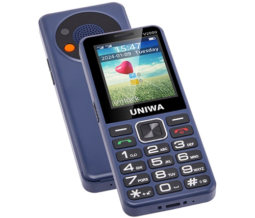 הטלפון הסלולרי UNIWA V2000 מתאים במיוחד למבוגרים. מגיע עם מקשים גדולים, ספרות ברורות ותצוגה גדולה וקריאה. כמו כן, מתאים לכבדי שמיעה (HAC) וכולל ספר טלפונים עד 1000 אנשי קשר ומנגנון רטט.