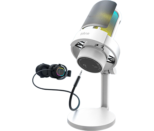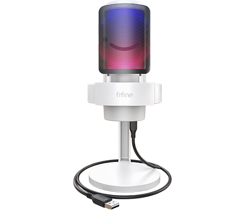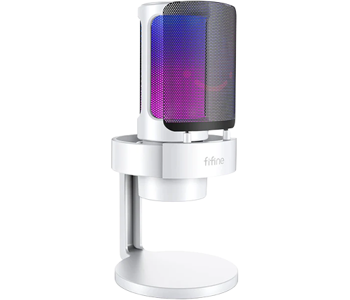 מיקרופון גיימינג קונדנסר שולחני עם תאורת Fifine A8 AmpliGame USB RGB צבע לבן