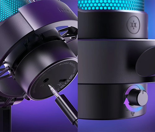 אבל הגיימר הסביר יעדיף תאורת RGB שניתן לשלוט בה. בהקשר הזה, ה-AmpliGame A8 הוא מיקרופון RGB חכם: העיצוב שלו דיסקרטי עד שהאורות נדלקים – ואז הכל משתנה! אפשר להדליק את ה-RGB כדי שיהיה נראה במצלמה, להפעיל מצב קשת צבעים ליותר אפקט, להתאים את הצבעים לסט החדר עם 7 צבעים קבועים, או פשוט לכבות את האור ליום עבודה רגיל.