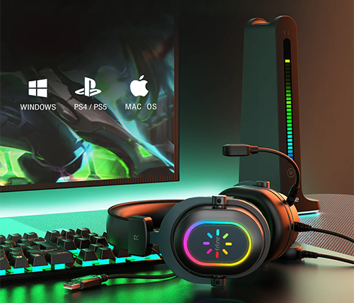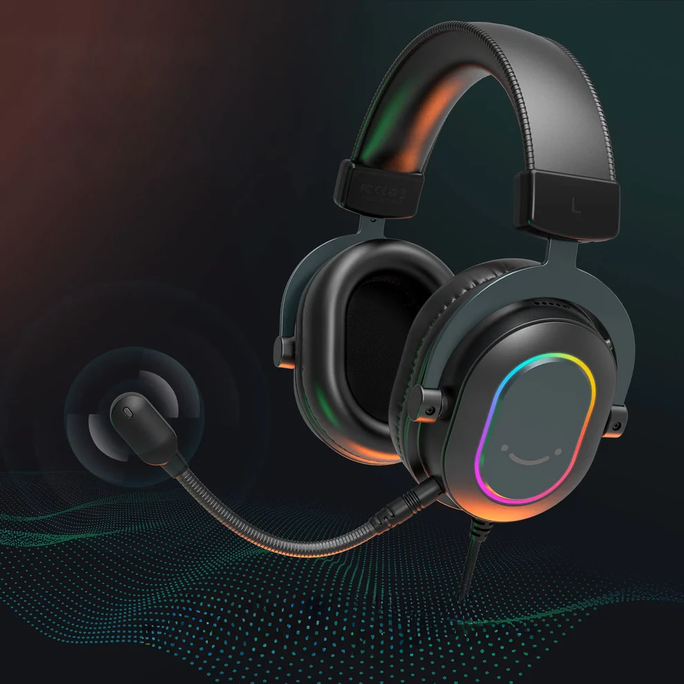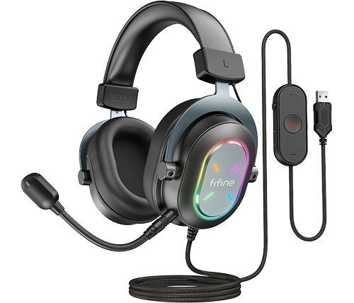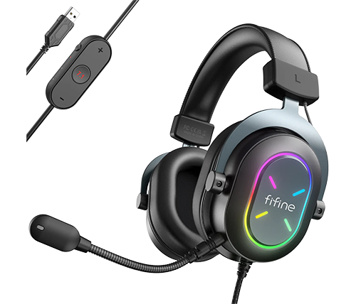 אוזניות גיימינג חוטיות עם מיקרופון ותאורת Fifine H6X USB RGB צבע שחור