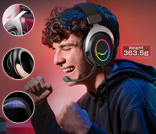 יותר ריפוד – בלי עומס מיותר. עבור אוזניות עם תאורת RGB ובקר אינליין, משקל של כ-350 גרם נחשב נוח ולא גורם בקלות לכאבי ראש גם לאחר שעות של משחק. אי אפשר להדגיש מספיק את החשיבות של נוחות באוזניות שנמצאות על הראש לאורך רוב זמן המשחק.