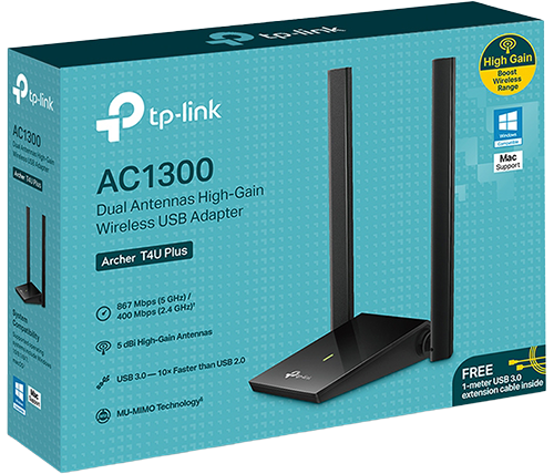 מתאם רשת אלחוטי TP-Link Archer T4U Plus Dual Band AC1300 WiFi USB-A