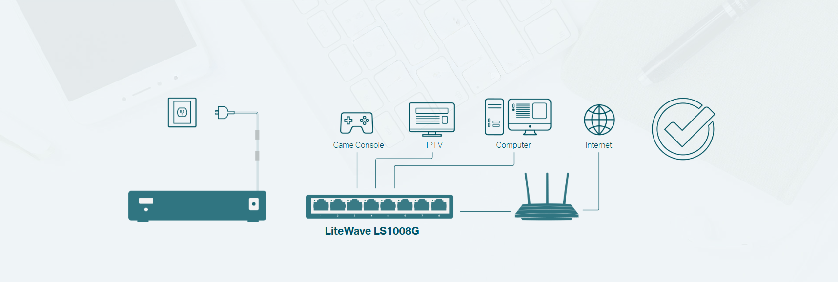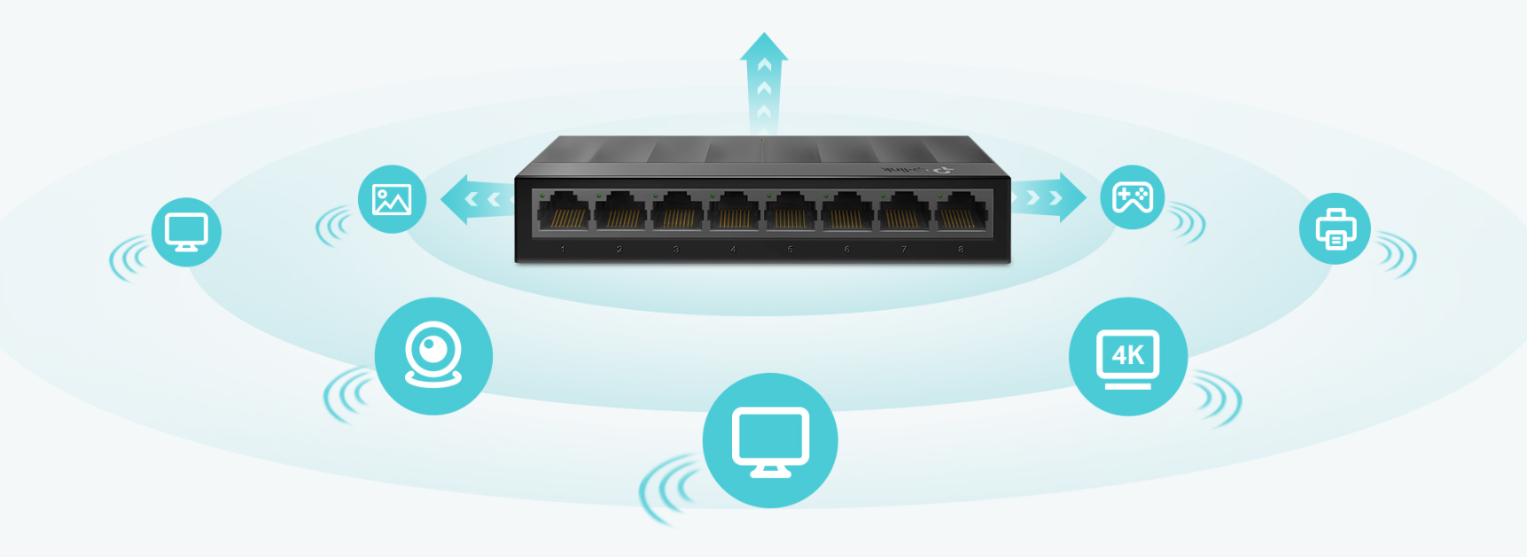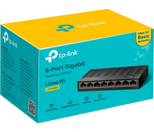ה־TP-Link LS1008G הוא סוויץ' ג'יגה־ביט קומפקטי עם 8 פורטים, המיועד להרחבת רשת קווית במהירות ובאמינות. הוא פועל בשיטת Plug & Play, ללא צורך בהגדרות, כולל טכנולוגיית חיסכון באנרגיה, עיצוב שקט ללא מאוורר ותואם למגוון מכשירים ולשימושים ביתיים ועסקיים.
