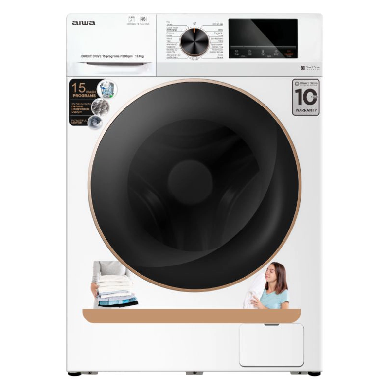 מכונת כביסה 10 קילו פתח קדמי בצבע לבן Aiwa Direct Drive - משלוח חינם