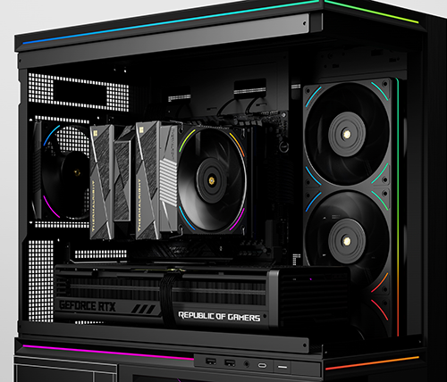 כוח הקירור שלו מבוסס על מבנה Twin-Tower מתקדם, המאפשר פיזור חום יעיל במיוחד. בשילוב שני מאווררים בגדלים שונים – TL-K12 בגודל 120 מ״מ ו-TL-HD13-X28 בגודל 130 מ״מ – מתקבלת זרימת אוויר אופטימלית שמעניקה יתרון משמעותי תחת עומסים כבדים. המאווררים פועלים בסינרגיה מושלמת ליצירת לחץ אוויר גבוה ויציבות תרמית מרשימה בכל מצב.