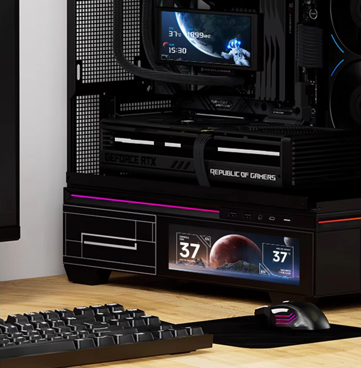 המסך משמש כמרכז מידע חי לניטור המחשב: עומסי מערכת, טמפרטורות, תדרים, צריכת חשמל, מהירות מאווררים ועוד. הכול מוצג בזמן אמת ובדיוק מרבי. בנוסף, ניתן להציג סרטונים, אנימציות ורקעים מותאמים אישית – שילוב מעולה בין פונקציונליות לעיצוב.