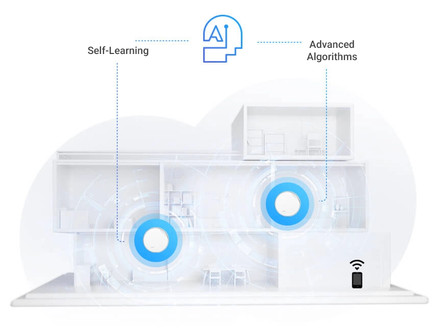 ה-Deco משתמשת באלגוריתמים מותאמים אישית כדי לאוטומט את החיבורים ברשת שלך, ומבטיחה את האות החזק ביותר בכל עת.