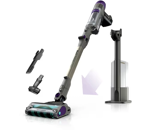 מערכת Shark® PowerDetect™ Clean & Empty מספקת את ביצועי ניקוי הלכלוך הטובים ביותר* מכל שואב אבק אלחוטי, יחד עם תחנת עגינה חכמה שמטעינה ומרוקנת את המיכל לאחר כל ניקוי.