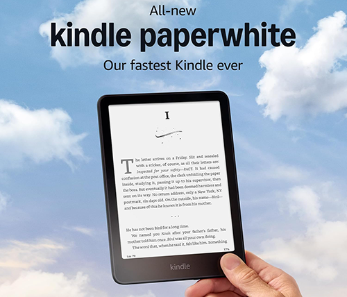 ה-Kindle Paperwhite דור 12 מהיר ודק יותר מהדגם הקודם. מסך ה-Paperwhite בגודל 7 אינץ', מפחית את השתקפות האור, מציע דפדוף מהיר יותר ב-25%, והניגודיות בין שחור ללבן משופרת, מה שהופך את הקריאה לברורה ונוחה יותר.