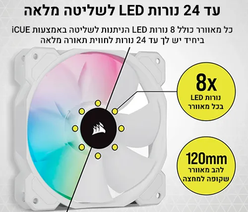 מאוורר למארז 12 ס''מ Corsair iCUE SP120 RGB ELITE בצבע לבן