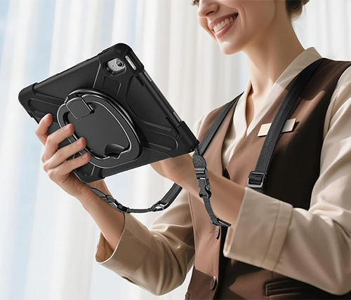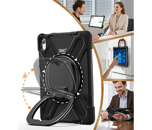 כיסוי קשיח לאייפד Apple iPad 10th Gen / A16 – גדלים 10.9/11 אינץ – כולל מגן מסך, רצועת כתף, ידית, ורצועה לעט – צבע שחור