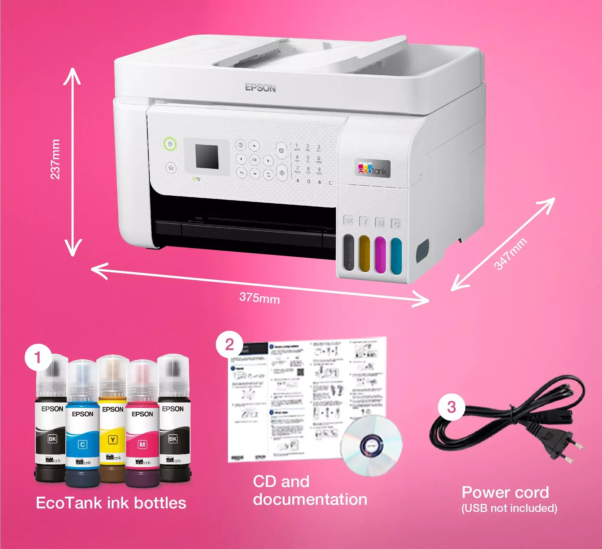 מדפסת חסכונית ורב-תכליתית זו חוסכת עד 90% מעלויות ההדפסה2 ומגיעה עם דיו כלול באריזה בכמות המספיקה עד שלוש שנים3. ערכת בקבוקי הדיו הכלולה מספקת עד 8,100 דפים בשחור ו-6,500 דפים בצבע.