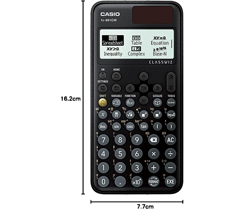 Casio FX-991CW (ClassWiz) הוא מחשבון מדעי מתקדם, לא גרפי ולא ניתן לתכנות, המיועד ללימודים והוראה. המחשבון כולל Natural Textbook Display להצגת משוואות ותוצאות בדיוק כמו בספרי לימוד, מסך High-Resolution עם 4 דרגות צבע, ותפריט אייקונים נוח ואינטואיטיבי. הוא כולל שורה של אפליקציות חישוב, כמו גיליון אלקטרוני (Spreadsheet) ותיבת מתמטיקה (Math Box) המאפשרות חישובים סטטיסטיים, חזרות, סימולציות סיכוי (גלגול קוביה, הטלת מטבע), ויכולת ליצור קודי QR להצגת גרפים במכשירים חכמים.
