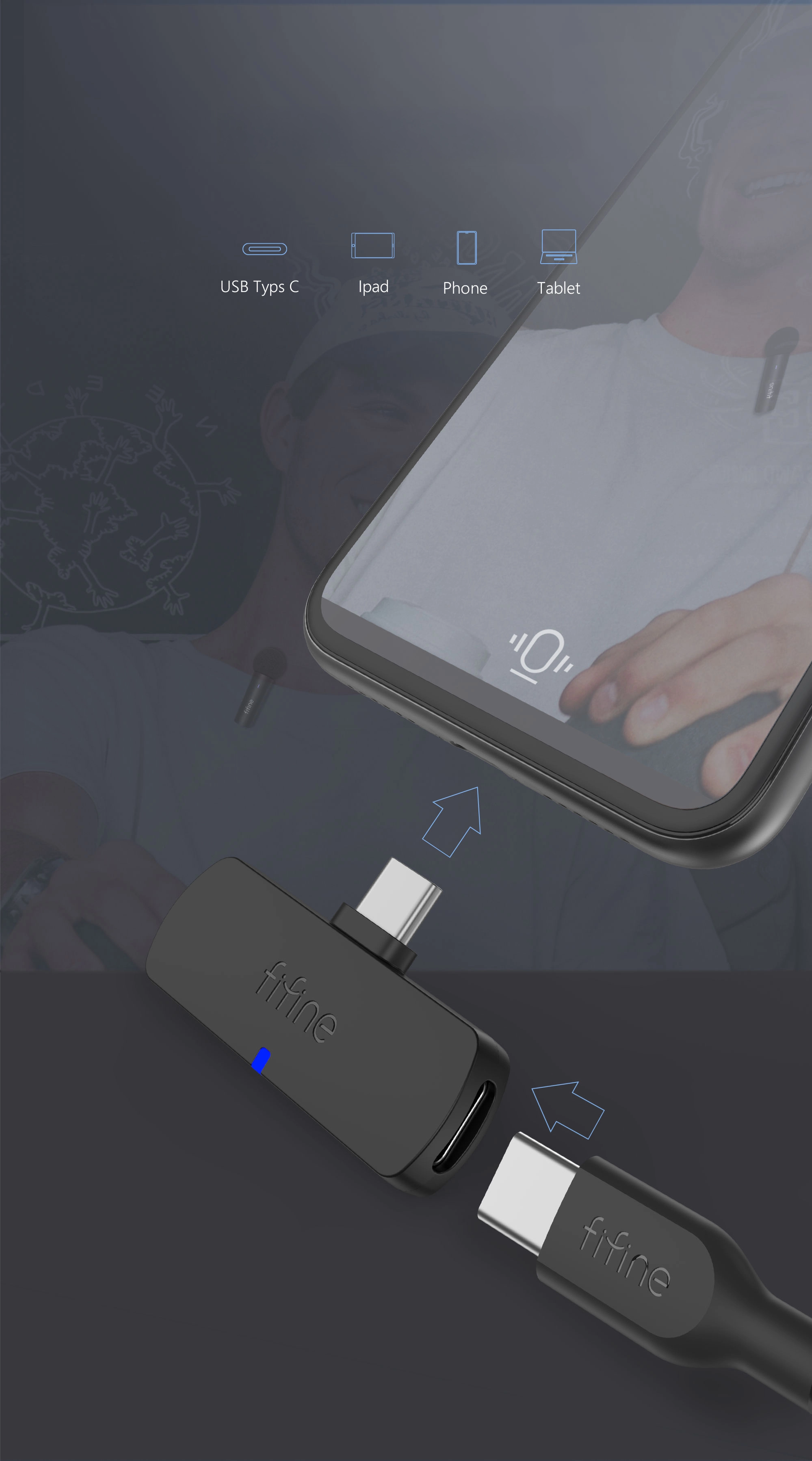 מציאון - מיקרופון דש אלחוטי לסמארטפון אנדרואיד Fifine M6 2.4GHz - מוחדש