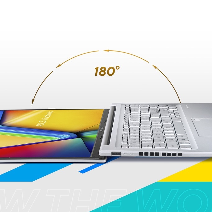 ה־Vivobook 16 כולל ציר מדויק שנפתח עד 180°, מה שמאפשר לכם לשתף תוכן בקלות עם אחרים או לעבוד בשיתוף פעולה עם קבוצה מסביב לשולחן.