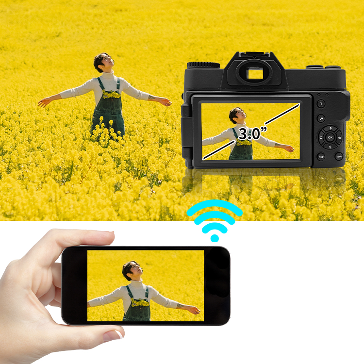 המצלמה מציעה חיבור Wi-Fi מובנה המאפשר שליטה מלאה דרך האפליקציה – צילום מרחוק, העברת תמונות מיידית והתאמת הגדרות בקלות מהטלפון. מסך ה-IPS בגודל 3 אינץ' מציג צבעים מדויקים וזוויות צפייה רחבות, מה שמקל על תצוגה, תפריטים ופריימינג מדויק.