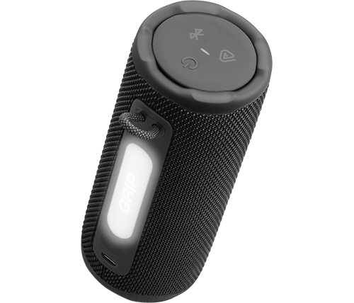 רמקול נייד JBL Grip, קל לאחיזה ונוח להחזקה, מספק סאונד JBL Pro עוצמתי עם בס חזק וצלילים גבוהים נקיים. תאורת הסביבה משתנה בהתאם למצב הרוח, והוא עמיד למים ואבק בתקן IP68, עמיד בפני נפילות, עם עד 14 שעות נגינה