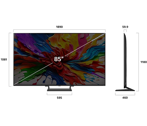 QNED85 מגיעה בגודל מרבי של עד 100 אינץ' וגודל המסך באינצ'ים עשוי להשתנות בהתאם לאזור.