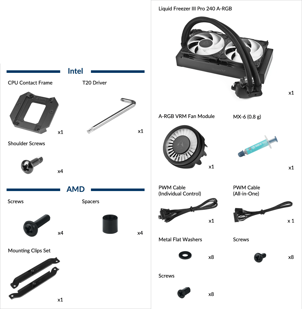 קירור נוזלי למעבד Arctic Liquid Freezer III Pro 240 A-RGB 240mm בצבע לבן
