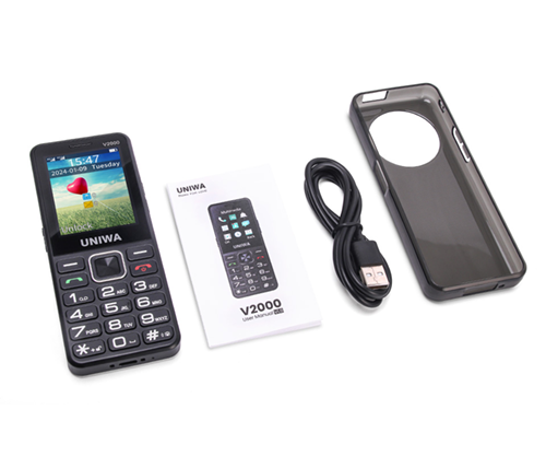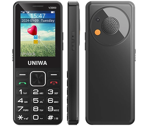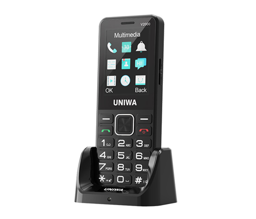 הטלפון הסלולרי UNIWA V2000 מתאים במיוחד למבוגרים. מגיע עם מקשים גדולים, ספרות ברורות ותצוגה גדולה וקריאה. כמו כן, מתאים לכבדי שמיעה (HAC) וכולל ספר טלפונים עד 1000 אנשי קשר ומנגנון רטט.