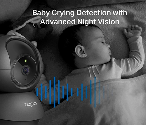 העיניים והאוזניים השניות שלכם – מצלמת Tapo כוללת זיהוי בכי תינוק וראיית לילה חדה עד 9 מטרים, לשמירה רצופה על התינוק לאורך כל היממה.