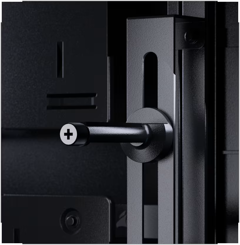 הציגו את כרטיס המסך שלכם בחזית הבנייה החדשה שלכם עם התקנה אנכית קלה — ללא כלים וללא צורך בתושבת (כבל Riser נמכר בנפרד).
