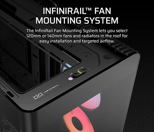 מערכת התקנה מפלדה מרובת נקודות שמעניקה לכם גמישות מלאה בתצורת המאווררים העליונה. תוכלו פשוט להזיז את המסילה כדי להתקין מאווררי 120 מ"מ או 140 מ"מ בדיוק במקום שבו אתם צריכים, ולהבטיח זרימת אוויר ממוקדת ללא מגבלת נקודות התקנה קבועות.