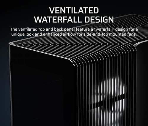 פאנלים אופטימליים לזרימת אוויר מקשטים את החלק העליון והצד של FRAME 4500X כדי לספק אוורור מיטבי למאווררים המותקנים בשני המקומות.