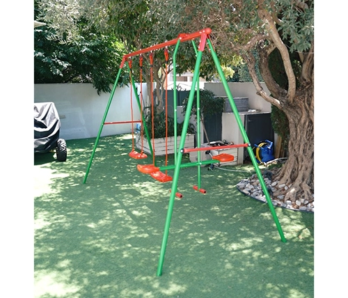 נדנדה משולבת לחצר לילדים מבית Canada Athletics, הכוללת נדנדה זוגית ושתי נדנדות יחיד, שילדה מתכתית חזקה בצביעה אפוקסית עמידה ואביזרי תלייה בטיחותיים. עומדת בדרישות מכון התקנים הישראלי לחוויית משחק בטוחה ומהנה בחצר.