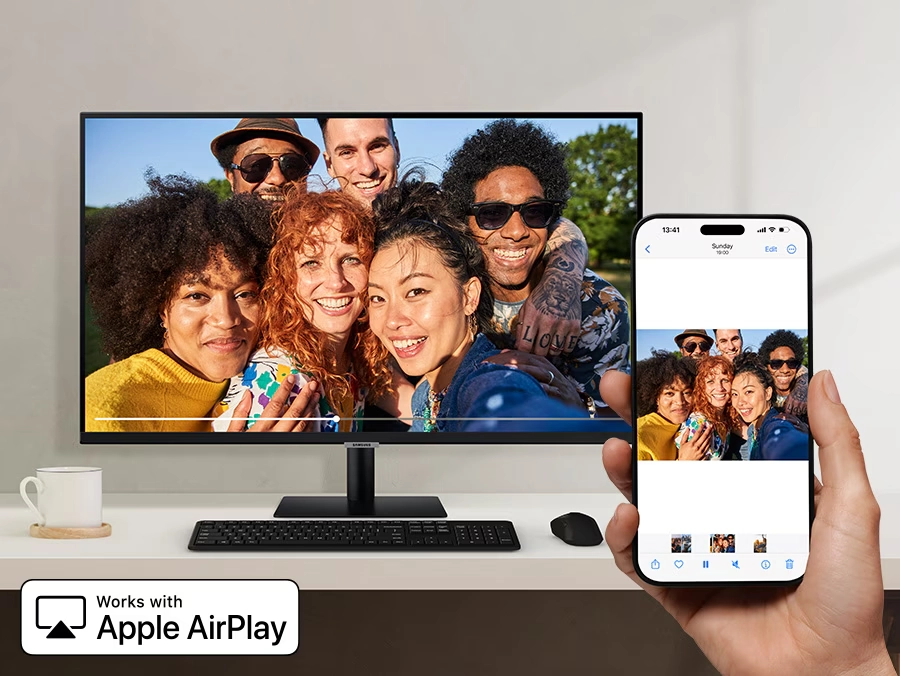 חברו באופן אלחוטי את מכשירי Apple שלכם ל-Smart Monitor וצפו בתוכן על מסך גדול יותר. עם התממשקות AirPlay, תוכלו ליהנות בקלות מתוכן מדיה או לשכפל אפליקציות, מסמכים ואתרי אינטרנט מ-iPhone, iPad או Mac.