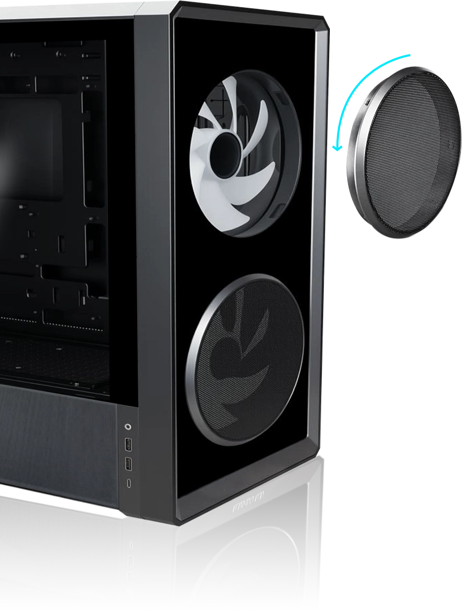 LANCOOL 217 INF מצויד במאווררים קדמיים ואחוריים בעלי ביצועים גבוהים, יחד עם אפשרויות התקנה נוספות בחלק העליון והתחתון של המארז. המערכת הגמישה הזו ממקסמת את פיזור החום ומבטיחה ביצועים יציבים וחלקים לכל הרכיבים הפנימיים.