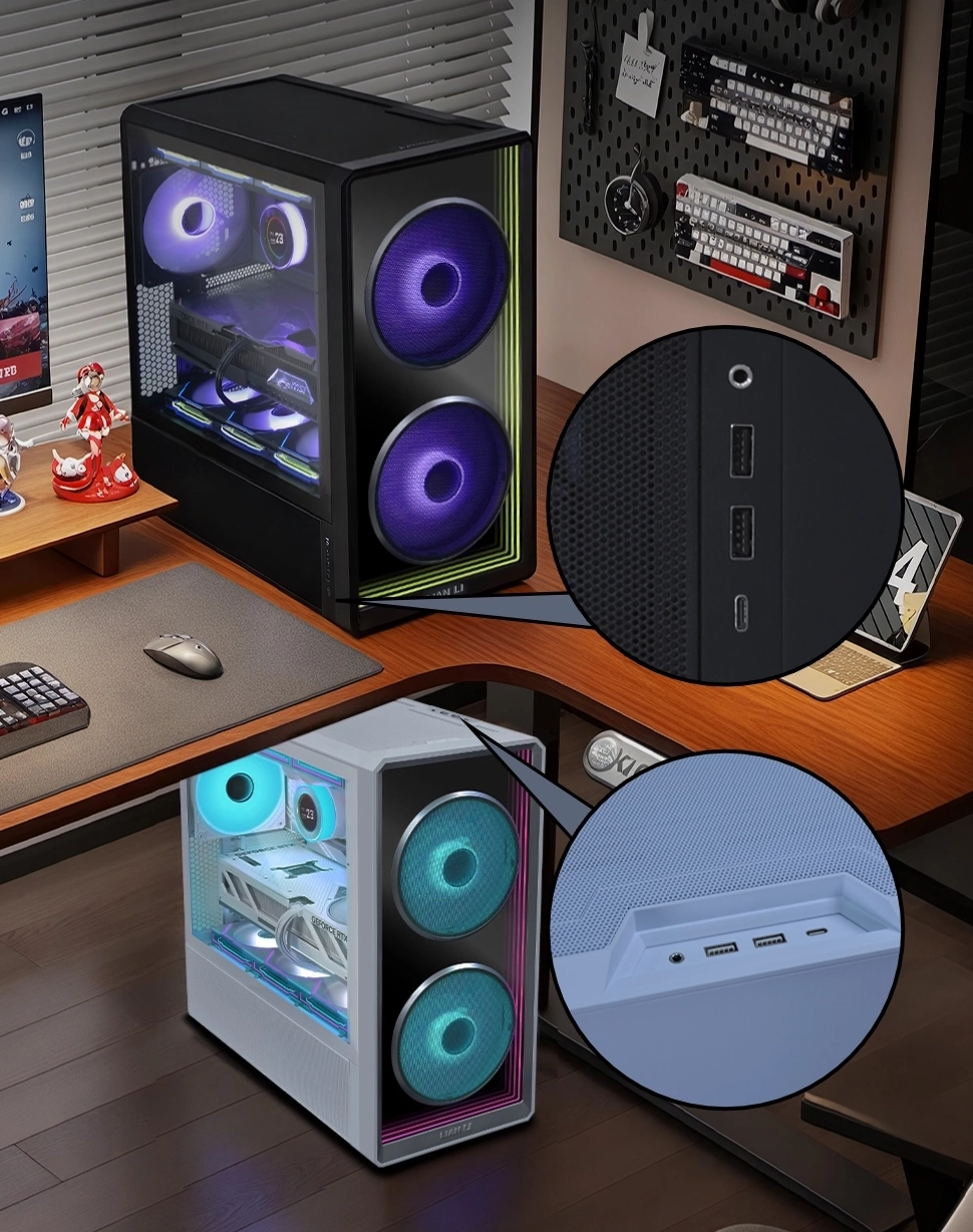 LANCOOL 217 INF מגיע בצבע שחור ו-לבן, כך שתוכלו להתאים אותו באופן מושלם לכל סגנון מערכת. עם מאווררי RGB מותקנים מראש ותאורת אינסוף, תקבלו מראה אחיד, נקי ומרשים במיוחד.